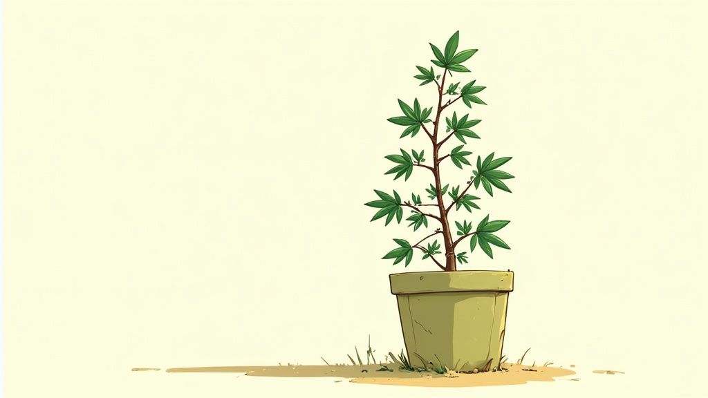 LST is how you step in and tell the plant to spread the wealth. By carefully bending that main stem down and tying it in place, you trick the plant into thinking its top is gone. This simple act breaks apical dominance and signals the plant to redirect growth hormones evenly to all the side branches.