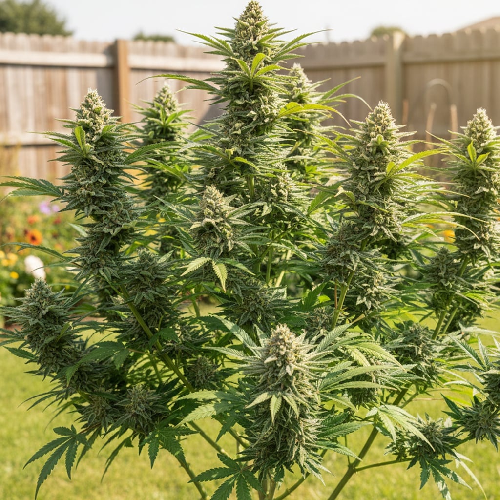 I grew these outdoors in the backyard, and they loved the natural sunlight. The plants grew into sturdy, medium-sized bushes with thick branches supporting heavy, resinous colas swaying gently in the breeze.